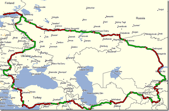 So total mileage for this trip 16830 km and made a nice looking circle: