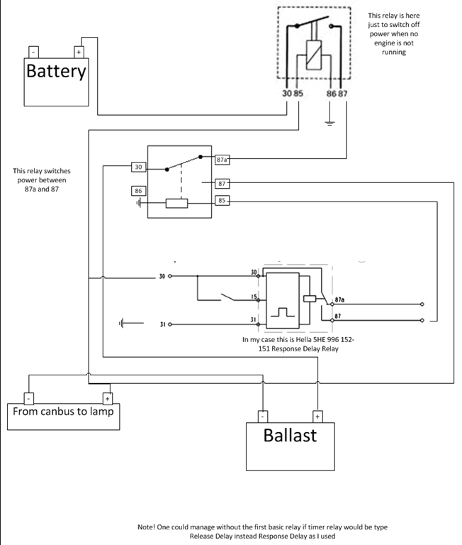 I managed to come up with an idea to power this Xenon HID lamp first from direct battery power and once engine has been running for a while, switch back to can bus power to get rid of LAMPF! warning.