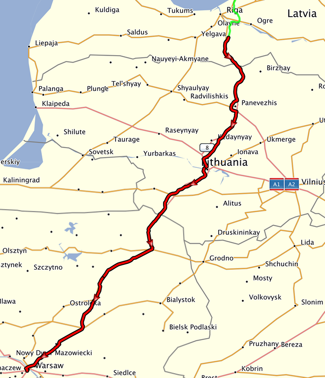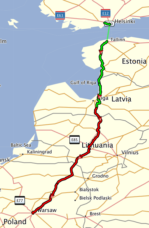 Had one stop on the way at Kaunas to refuel, other than that I just drove directly to Warsaw. I arrived actually some 2-3 hours ahead of planned schedule which I looked from previous trips.