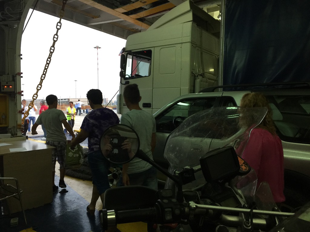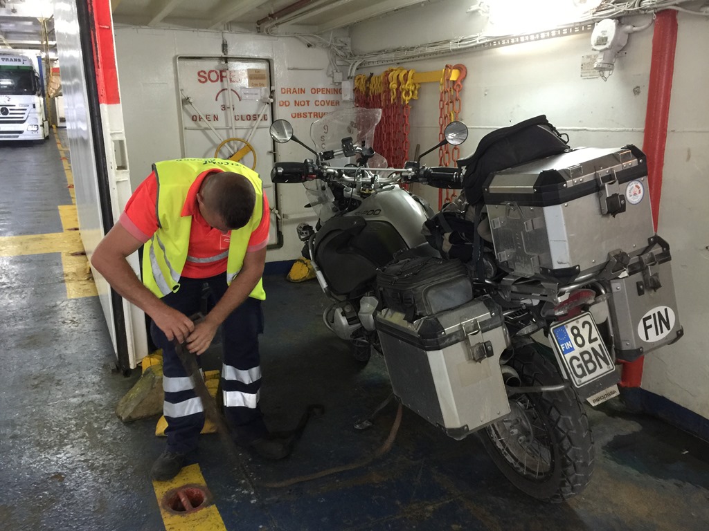 At the ferry there was a crew member to really tie down the bike, not like on Nordic ferries where you need to do everything on your own.