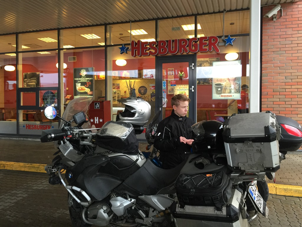 In Bauska we made third stop to eat and as it was getting late I called into our next hotel to put the sauna on so that when we get to the hotel we get directly into sauna. Dinner was Mega Burger at local Hesburger, just to get something to eat and fast.